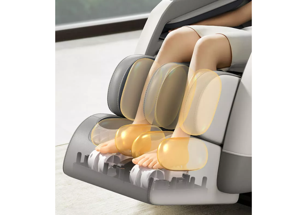 Le système inclut des airbags de compression silencieux multi-zones, une thérapie par chaleur intégrée au niveau de la taille et des mollets, ainsi qu’un massage de grattage par rouleaux au niveau des pieds (Foot Roller Scraping) pour un relâchement profond et une meilleure circulation.