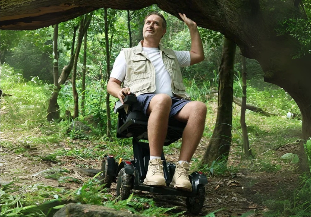 Le fauteuil ajuste en temps réel l’inclinaison du siège pour maintenir une posture stable et sécurisée, même en montée, en descente ou sur terrain irrégulier.