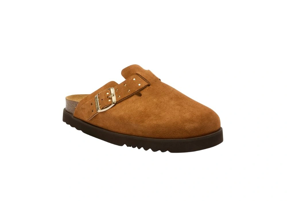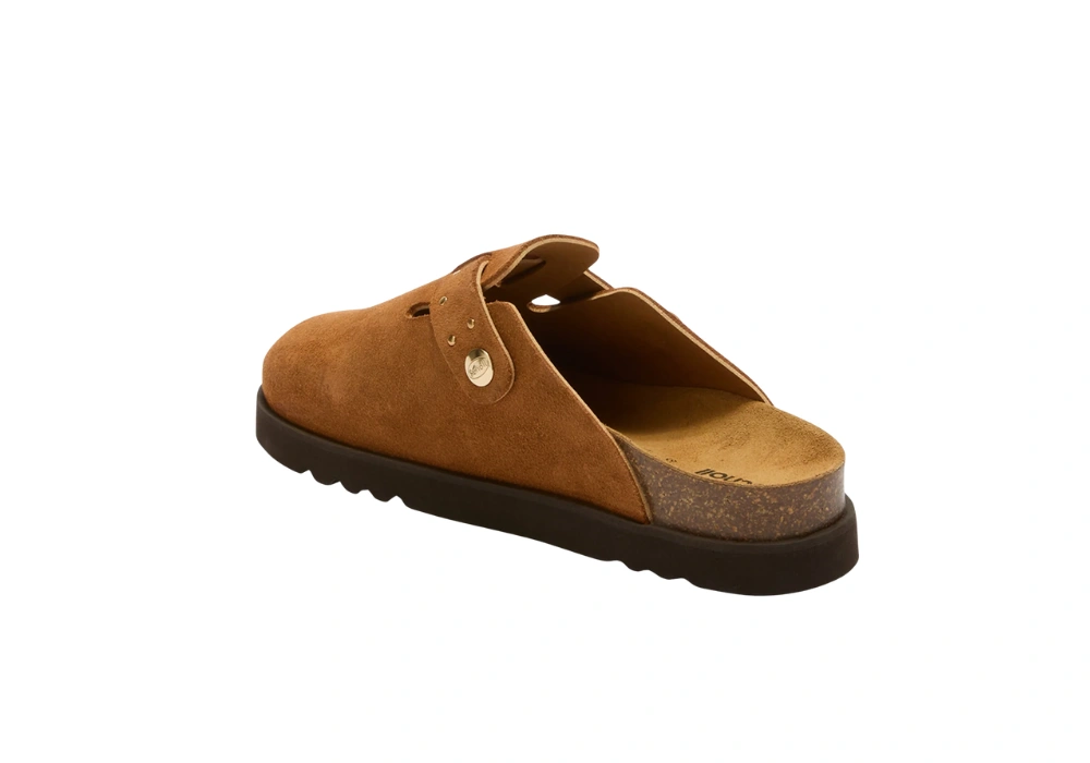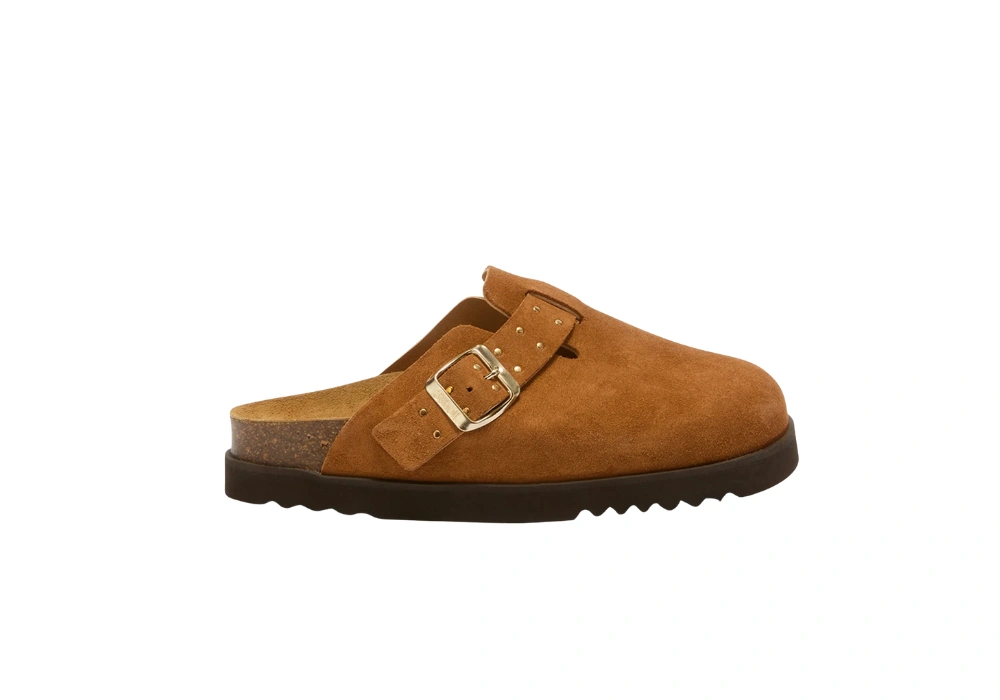 Confectionné en suède cognac, ce sabot offre un look chaud et naturel, pensé pour un confort quotidien.
