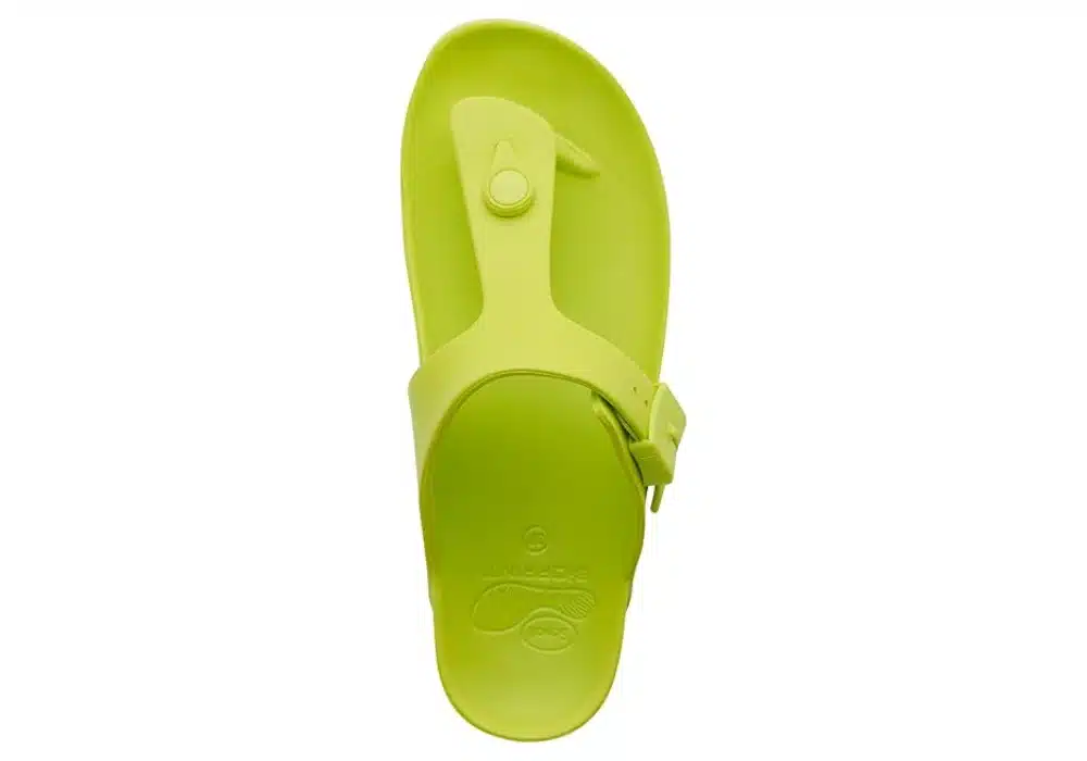 La Sandale Bahia Flip-Flop Vert Citron de Scholl réinvente le classique tong avec un design résolument contemporain et un confort inégalé. Son coloris vert citron vif dynamise vos tenues estivales, tandis que sa conception ultra-légère et flexible suit naturellement vos mouvements. L’intérieur de la semelle et de la tige arbore une texture “effet sable” antidérapante.