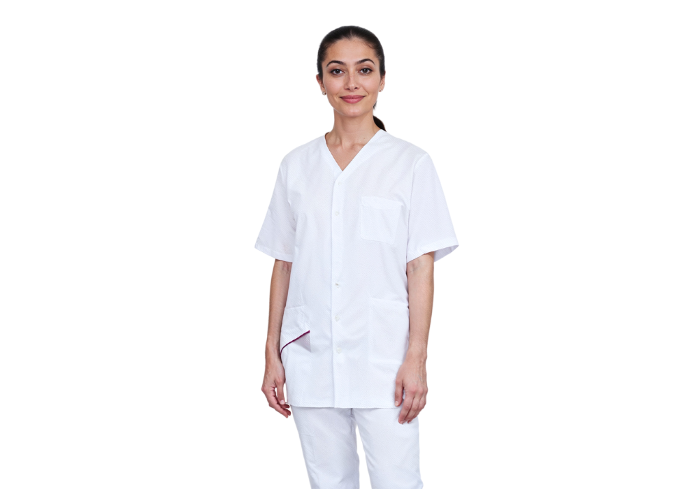 La blouse femme FELICIA se distingue par son élégance et ses détails soignés. Son col chemise apporte une touche professionnelle, avec un accent de couleur appliqué de manière distinctive sur le devant et le dos, ajoutant une note d'originalité au modèle. Pour une allure soignée et confortable au quotidien pour les professionnelles de santé.
